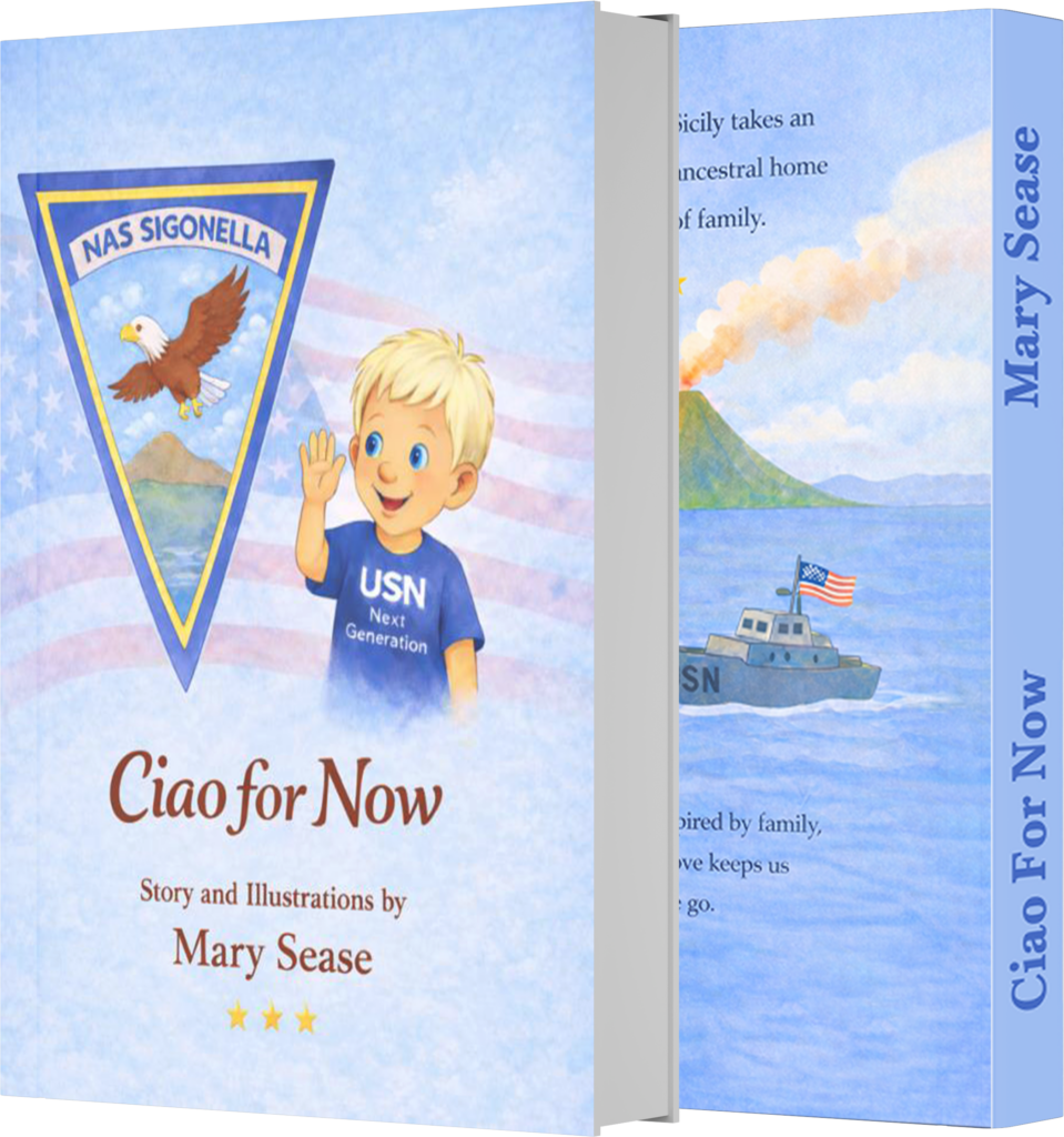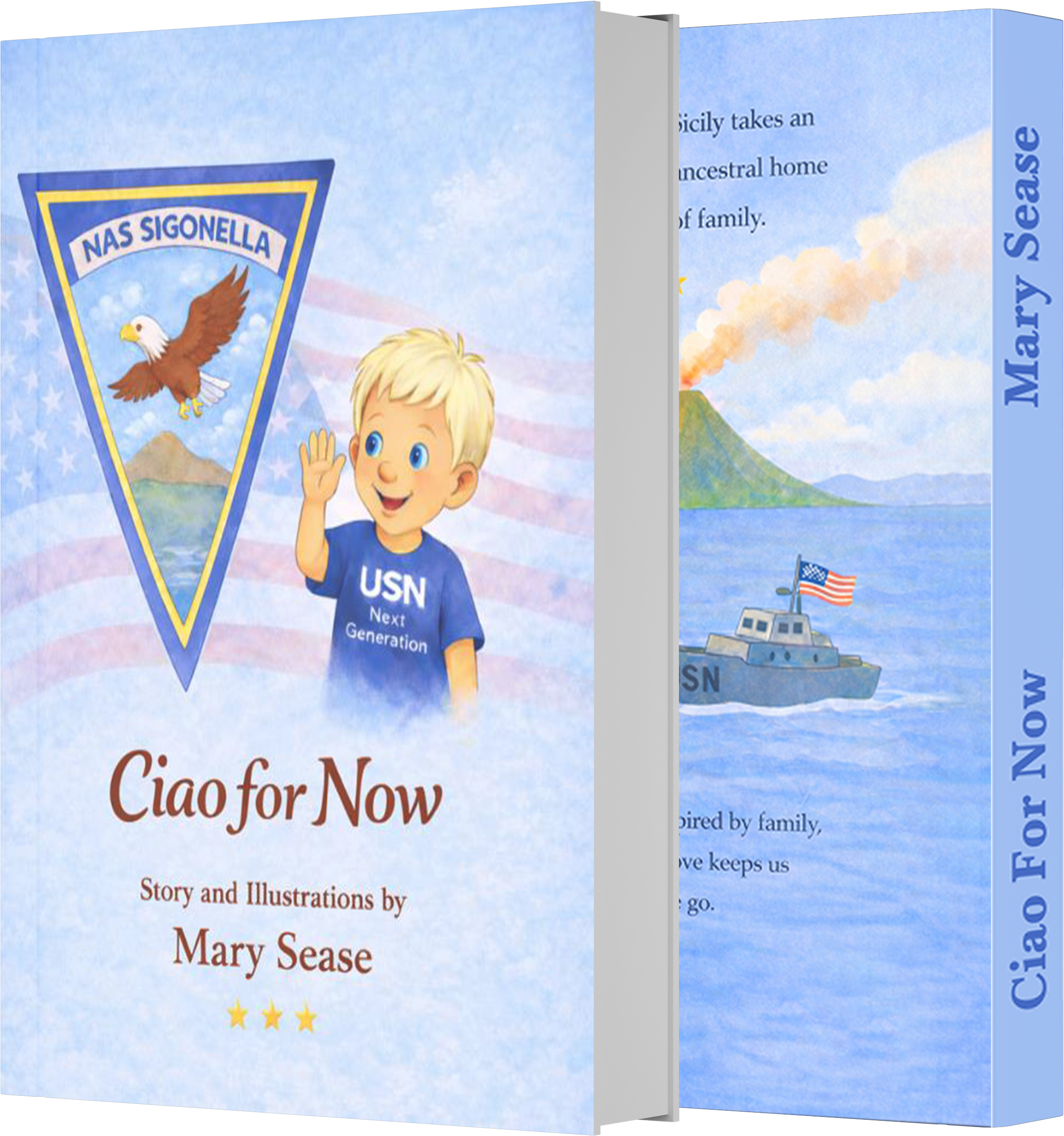 Ciao for now is a heartfelt children’s story inspired by a real family journey, We follow a young boy whose Navy family is stationed in Sicily, Italy for their next assignment. As he travels across the Straits of Messina to his grandfather’s ancestral village, he is wrapped in the warmth of zias, cousins, and generations of love. Through shared meals, open arms, and simple moments, he learns that family stretches across oceans and time. Ciao for Now is a gentle reminder that goodbyes are never the end—just a promise of see-you-soons! Another story is always just beginning.
